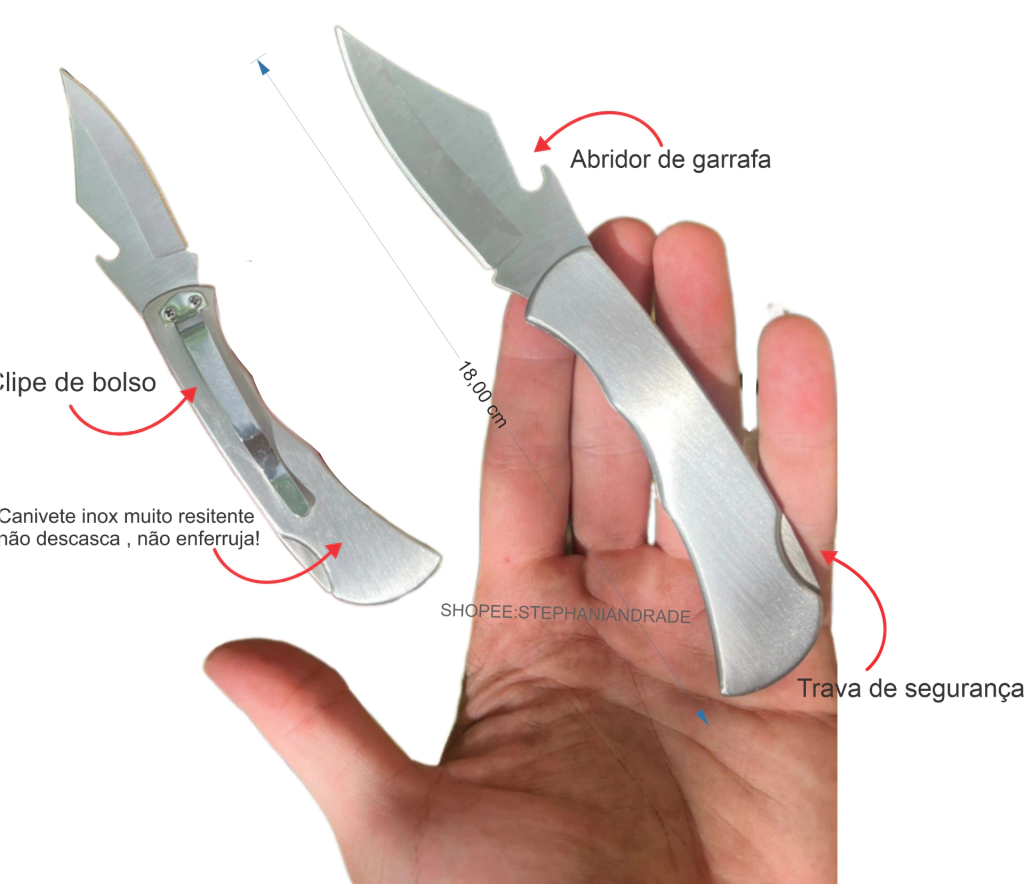 Canivete totalmente em aço inox.