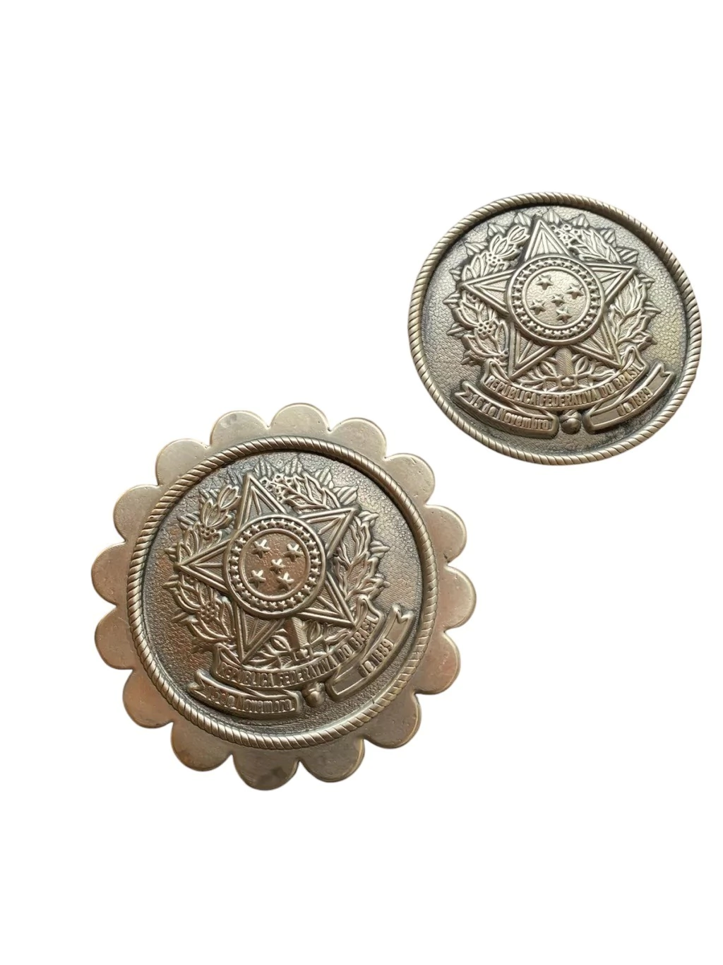 Peças Originais, de Alpaca, Prontas para uso, com aro de metal atrás.